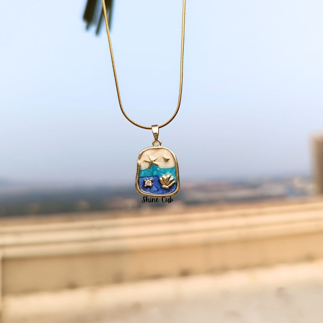 • Gold-plated ocean-inspired pendant with starfish and seashell detailing.